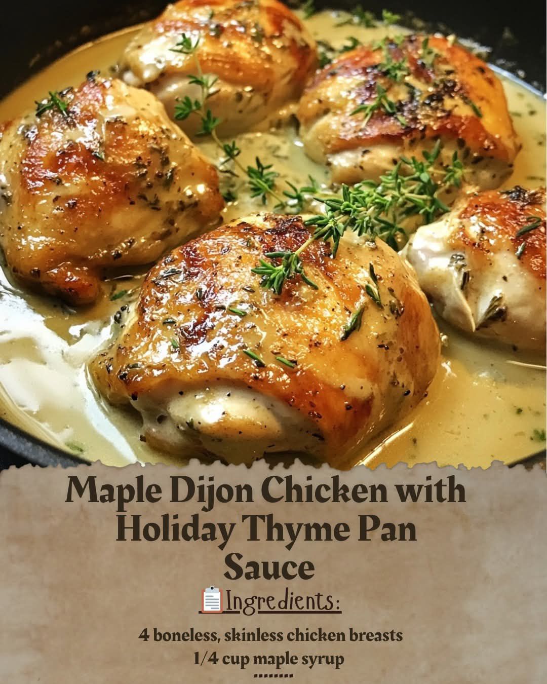 Here’s a refined, flavorful recipe for Maple Dijon Chicken with Holiday Thyme Pan Sauce—perfect for a cozy, festive meal.