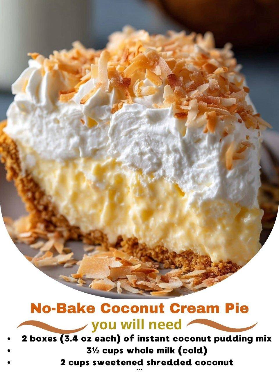 A No-Bake Coconut Cream Pie is a perfect dessert when you’re craving something creamy, sweet, and coconutty without having to turn on the oven. It’s easy to make, chilled to perfection, and has that delightful coconut flavor throughout. Here’s a simple, delicious recipe for you!